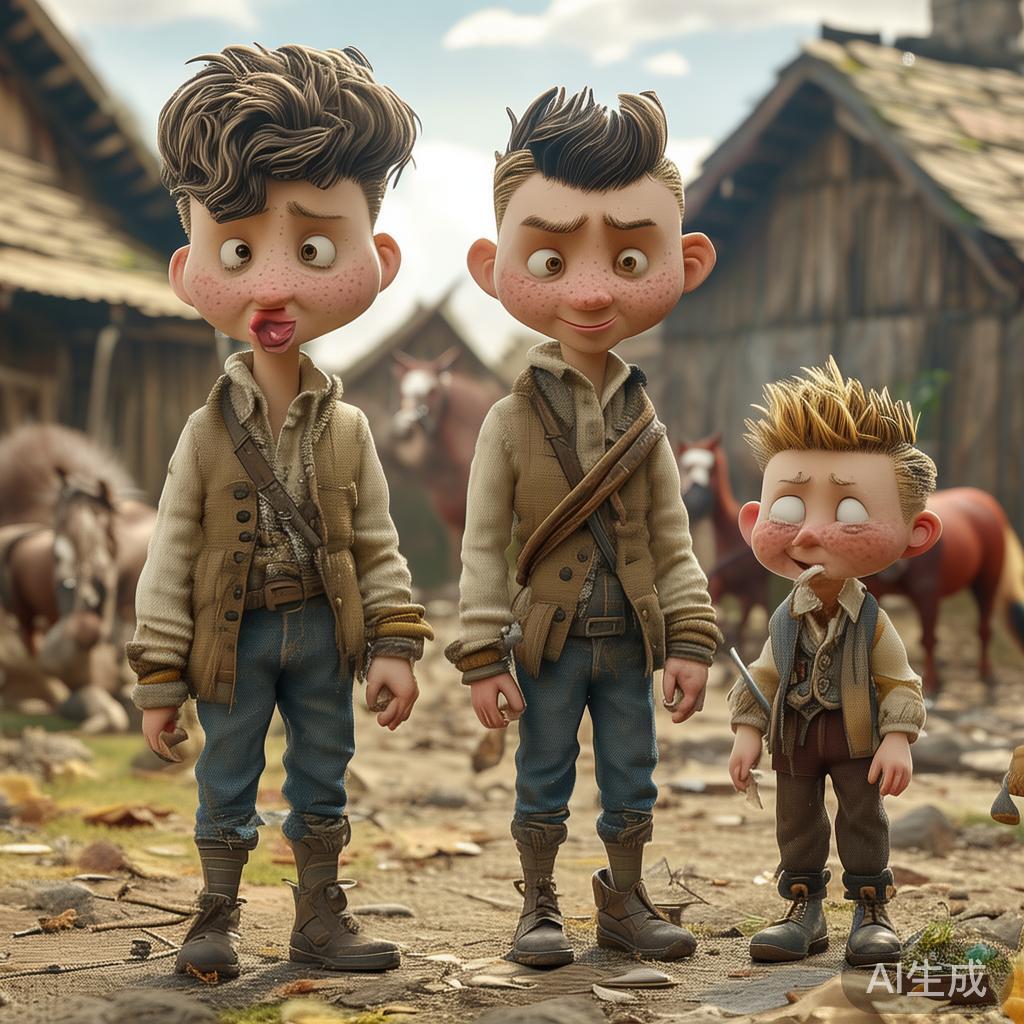 我那么想,我的大儿子和小儿子真是一对很有意思的小家伙。大儿子性格沉稳,总觉得自己勇敢无比。但谁知道,小儿子倒是个稀奇古怪的孩子,对新鲜事物充满好奇,可又没多少脑筋。有一次,大儿子外出打猎,竟把人家的马给当成老虎射了!这下可闹得不可开交,画家不得不给马主人赔钱。