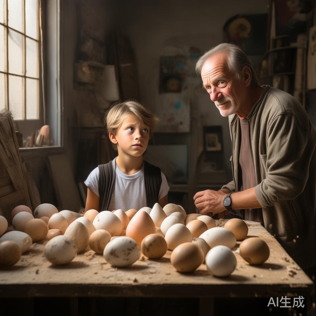 然后,课程正式开始。老师的方法挺特别的,他没有让我抄别人的画,而是只给我一个鸡蛋,让我专心致志地去描绘它。一开始,我还觉得这个任务蛮有趣的,画了一张又一张,乐在其中。但是,时间长了,天天面对同一个鸡蛋,我开始觉得乏味得要命。到底还有多少种方式可以画出一个鸡蛋呢?